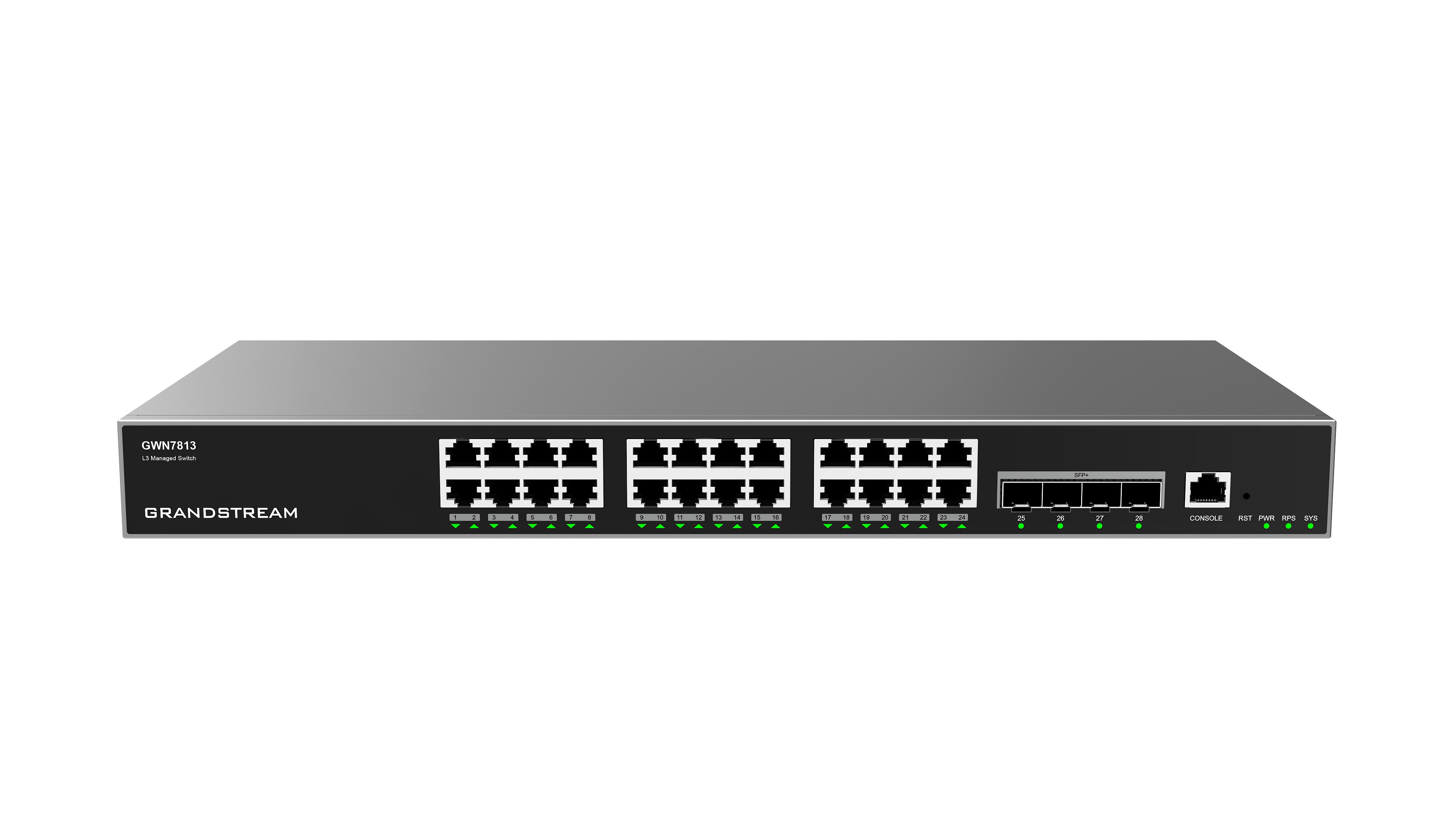 Popis Grandstream GWN7813 Layer 3 Managed Network Switch 24 portů / 4x SFP+