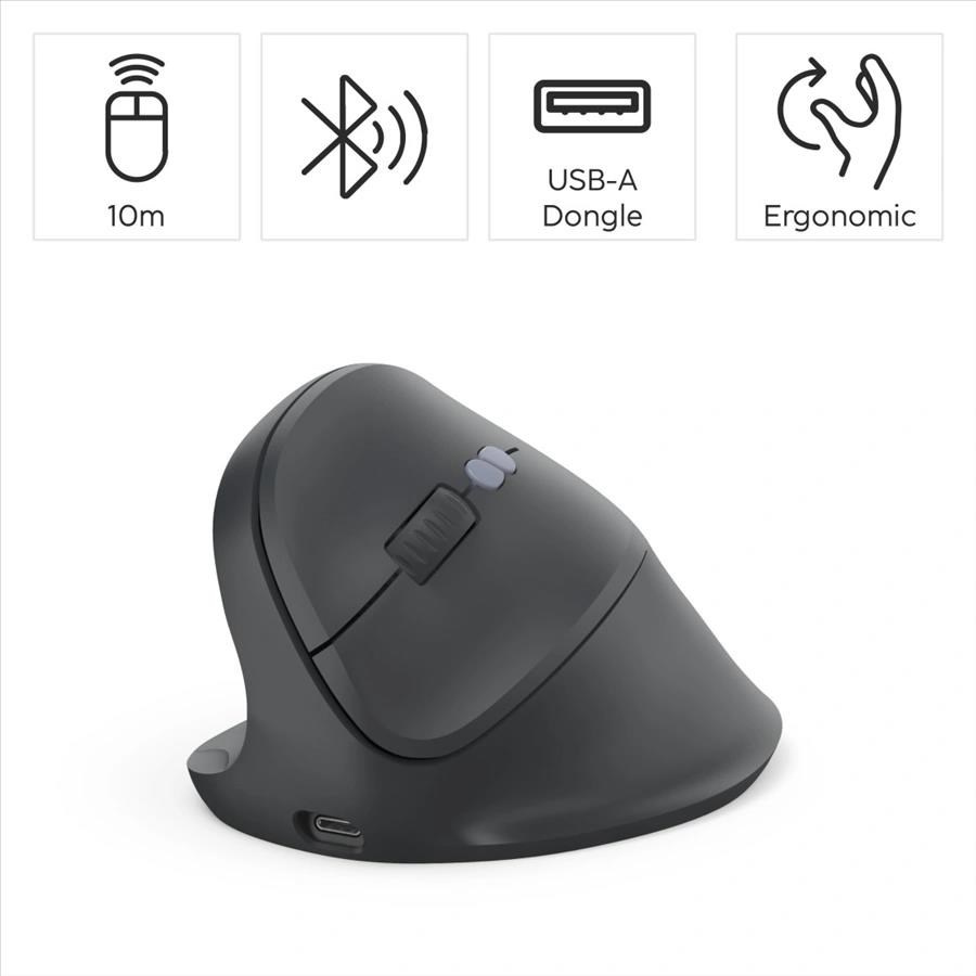 Popis Hama vertikálna ergonomická bezdrôtová myš EWM-600L, pre ľavákov, nabíjacia, čierna