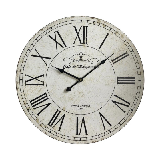 • analógové nástenné hodiny • čas riadený krystalom • rímske číslice • materiál plast • priemer ciferníka 500 mm • napájanie na 1 ks batérie typ AA 1,5 V (tužková, nie je súčasťou balenia) • ciferník žltohnedý, číslice čierne