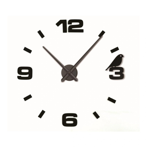 • analógové samolepivé nástenné hodiny vhodné pre hladký povrch • čas riadený kryštálom • priemer ciferníka 100 až 600 mm, podľa želania používateľa • veľkosť číslic 74 mm • napájanie na 1 ks batérie typ AA 1,5 V (tužková, nie je súčasťou balenia) • číslice čierne