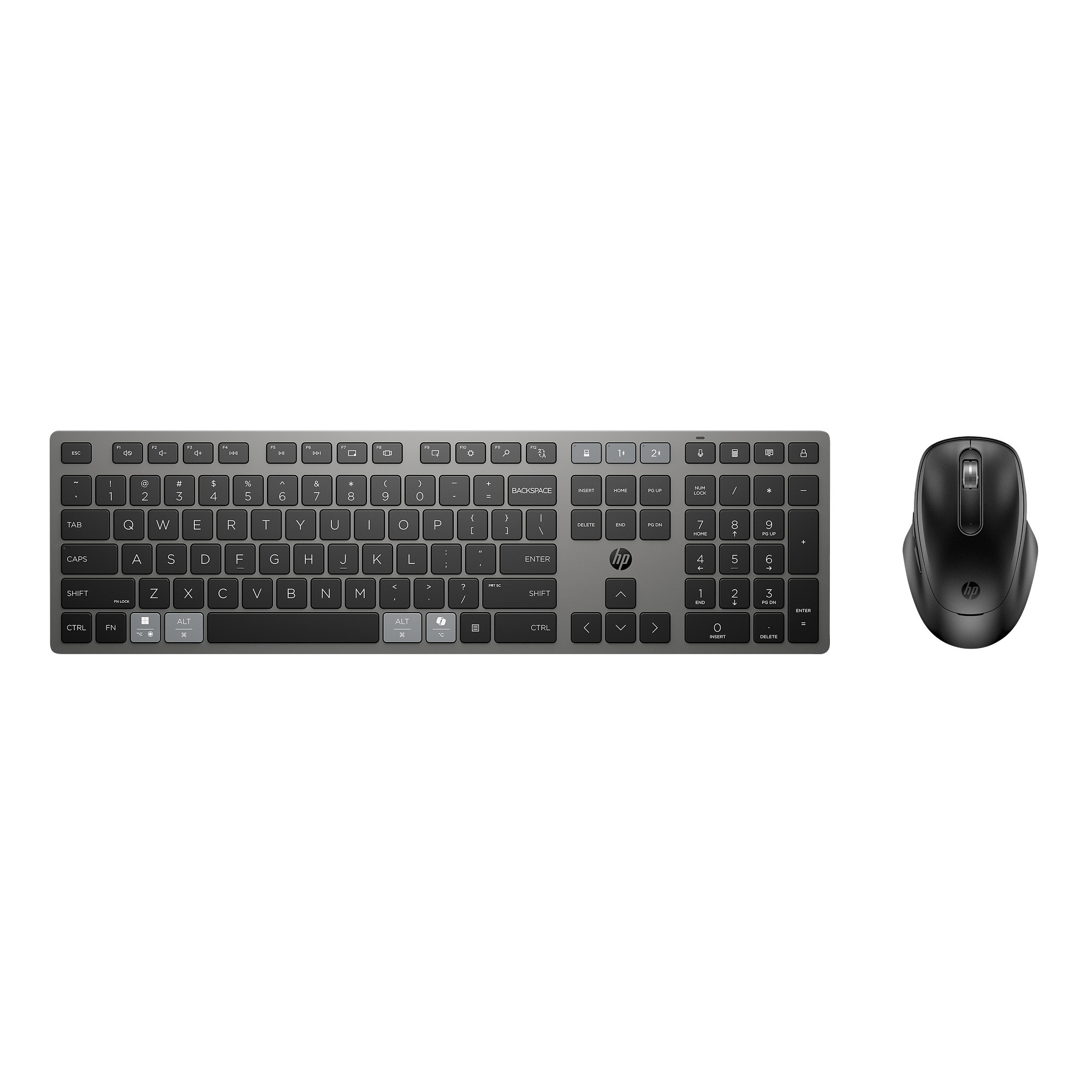 | Obsah balenia | Bezdrôtová klávesnica; Bezdrôtová myš; Nabíjací kábel USB Type-C®; Stručná úvodná príručka; Záručný list; Zjednocujúci hardvérový kľúč HP |
