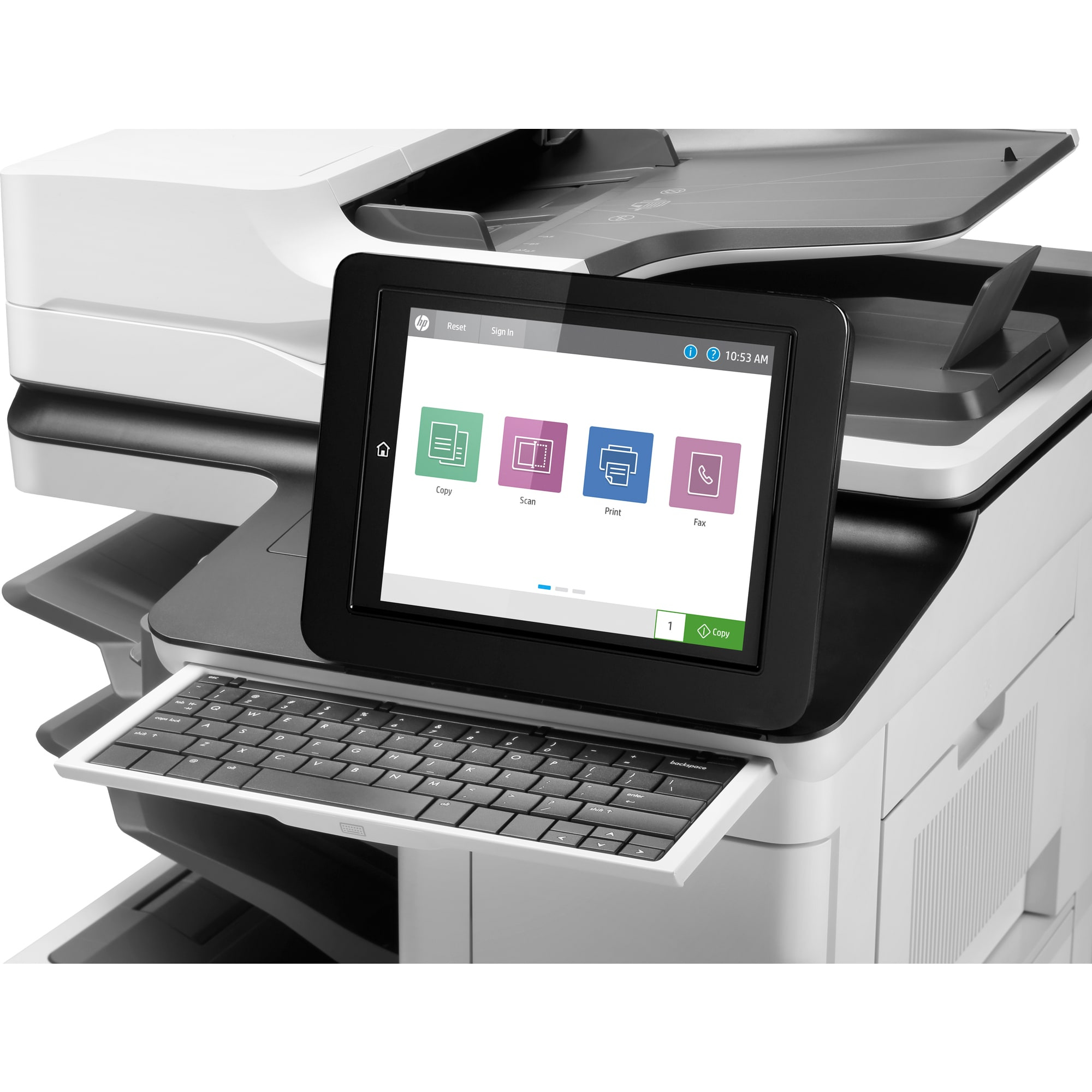 | Vstupné režimy skenovania | Aplikácie na prednom paneli: Kopírovanie; E-mail; Uloženie do sieťového priečinka; Uloženie do USB; Uloženie do pamäte zariadenia; Uloženie do SharePoint; Aplikácie OXP (Open Extensibility Platform); HP Scan alebo používateľská aplikácia cez rozhranie TWAIN |
