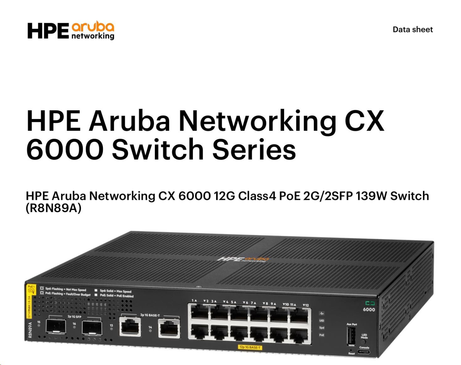 HPE Aruba Networking CX 6000 12G Class4 PoE 2G/2SFP 139W Switch