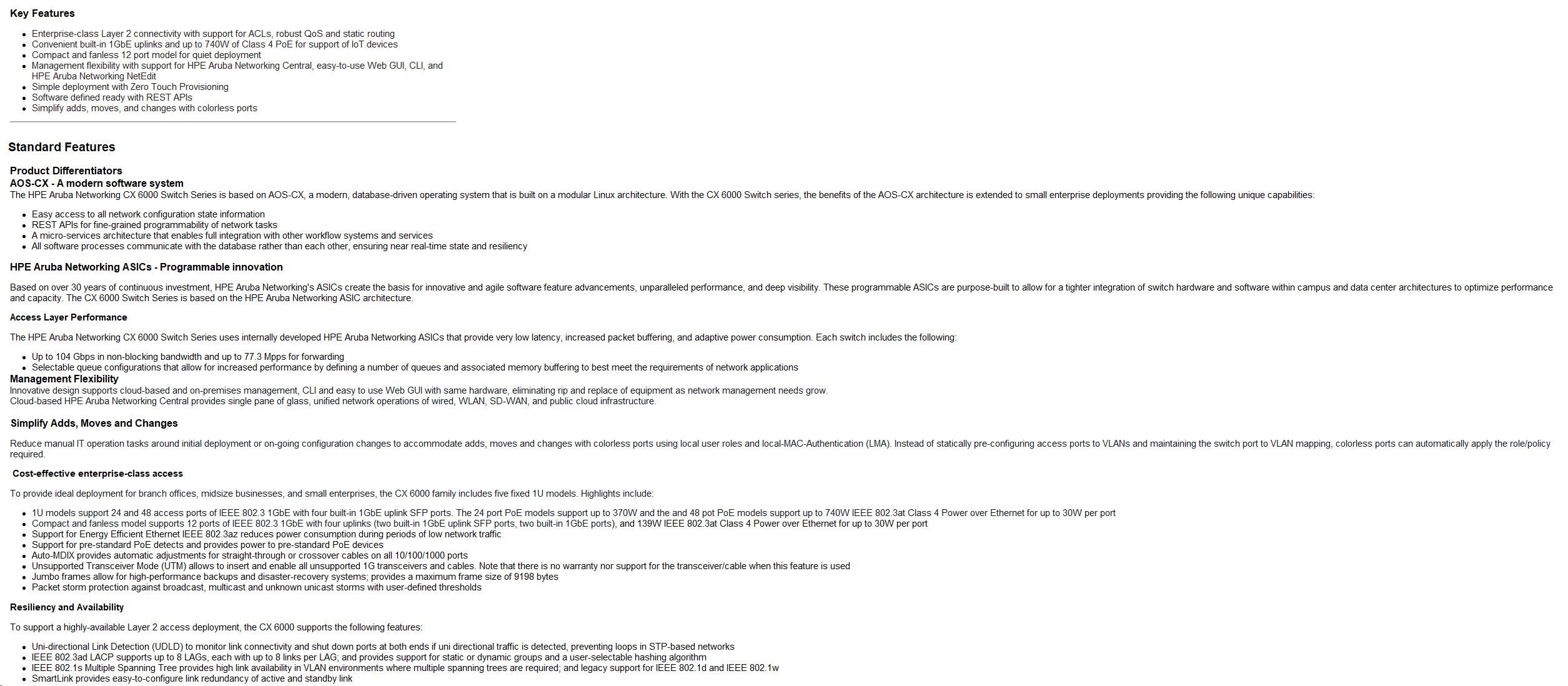 HPE Aruba Networking CX 6000 12G Class4 PoE