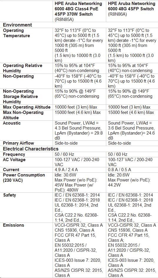 Popis HPE Aruba Networking CX 6000 48G 4SFP Switch R8N86A