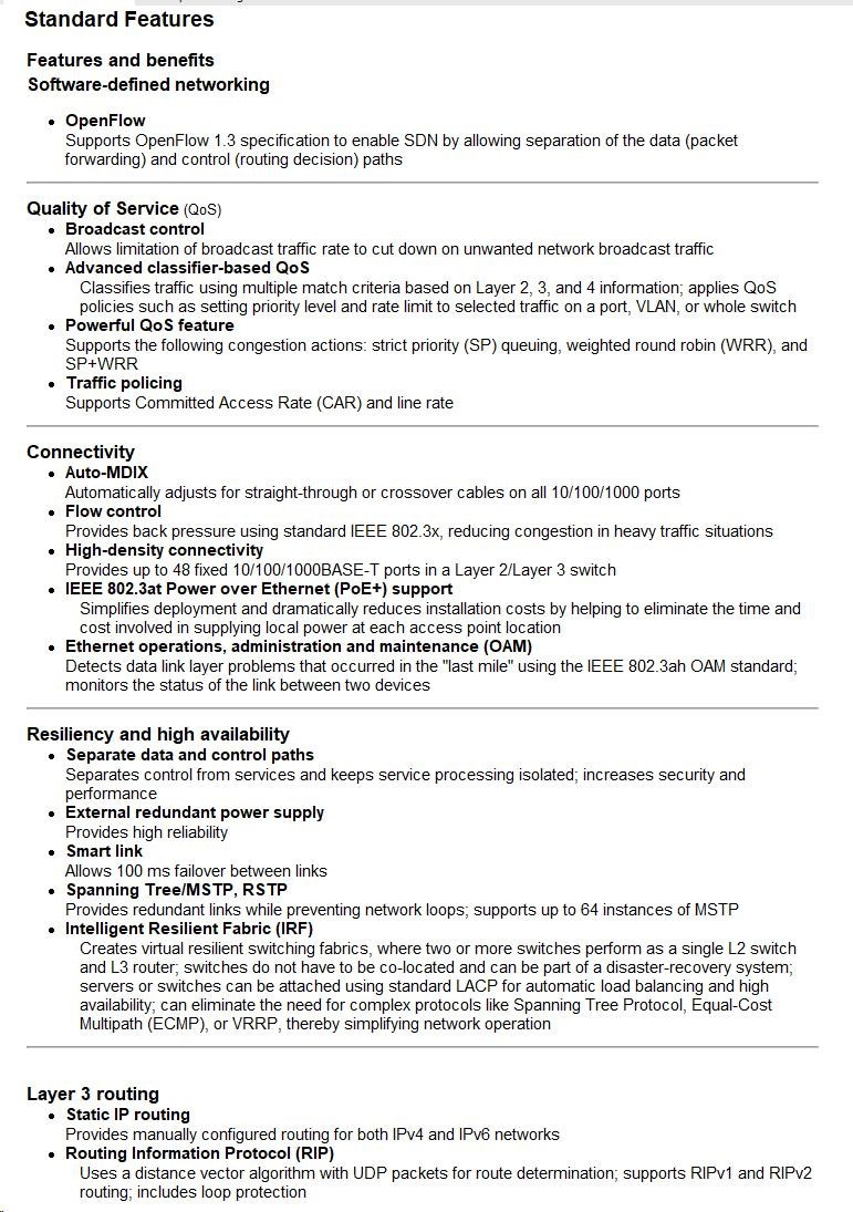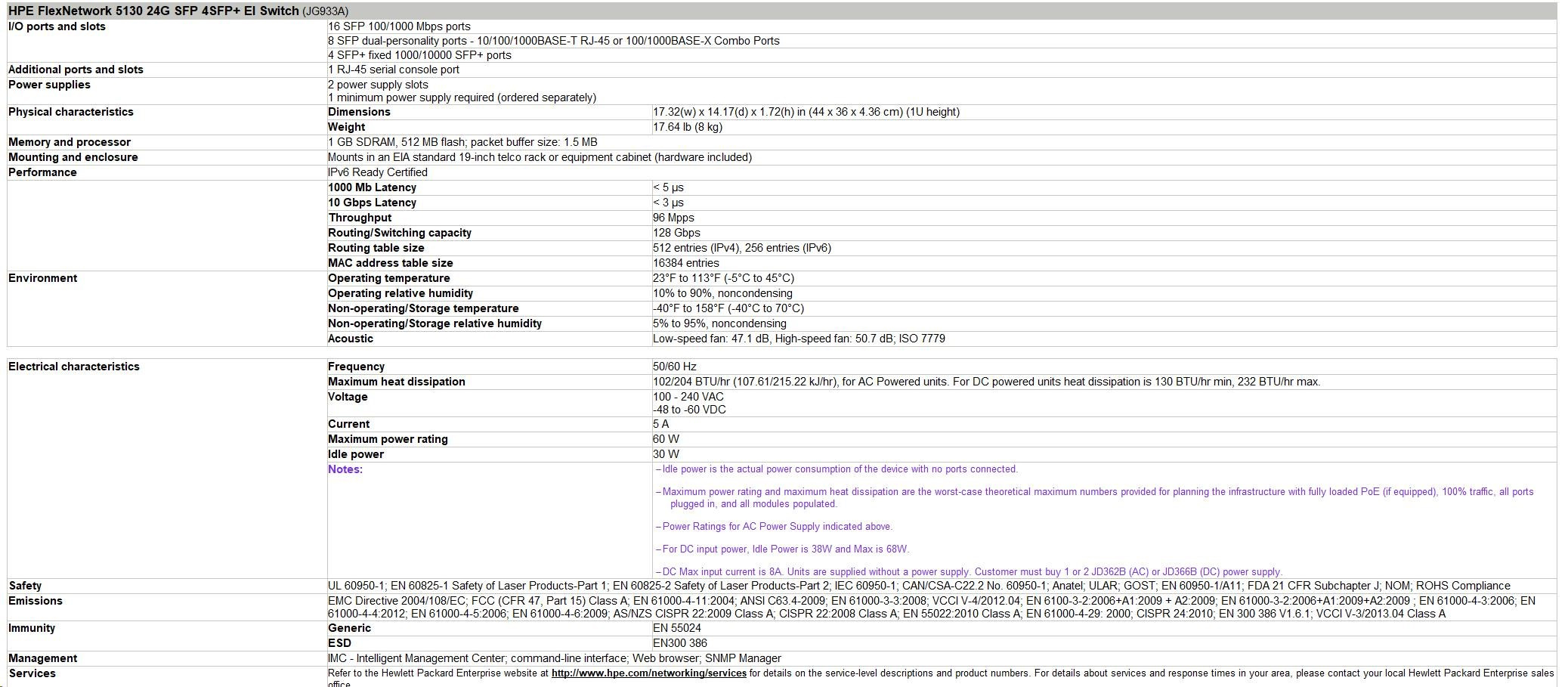 Popis HPE FlexNetwork 5130 24G SFP 4SFP+ EI Switch (Must select min 1 power supply) RENEW JG933AR