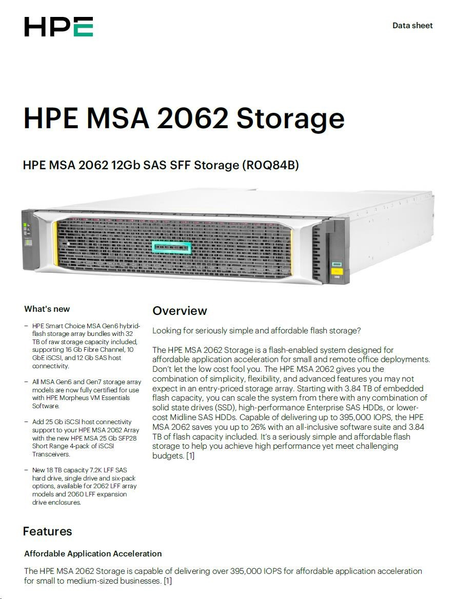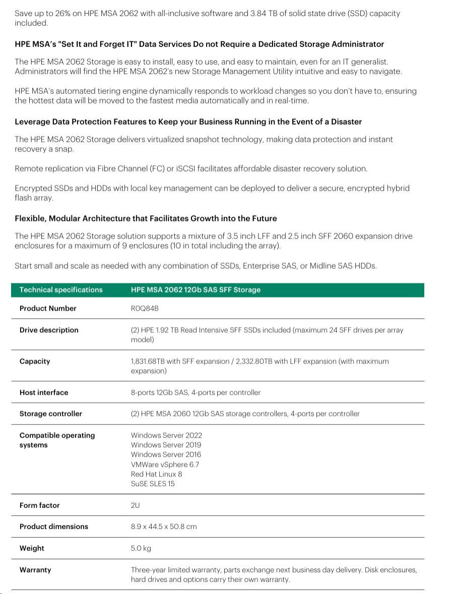 HPE MSA 2062 12Gb SAS SFF Storage (2x1.92TB SSD + OneAdvanDataServ LTU (PerfTiering+512snapsh+remsnap)