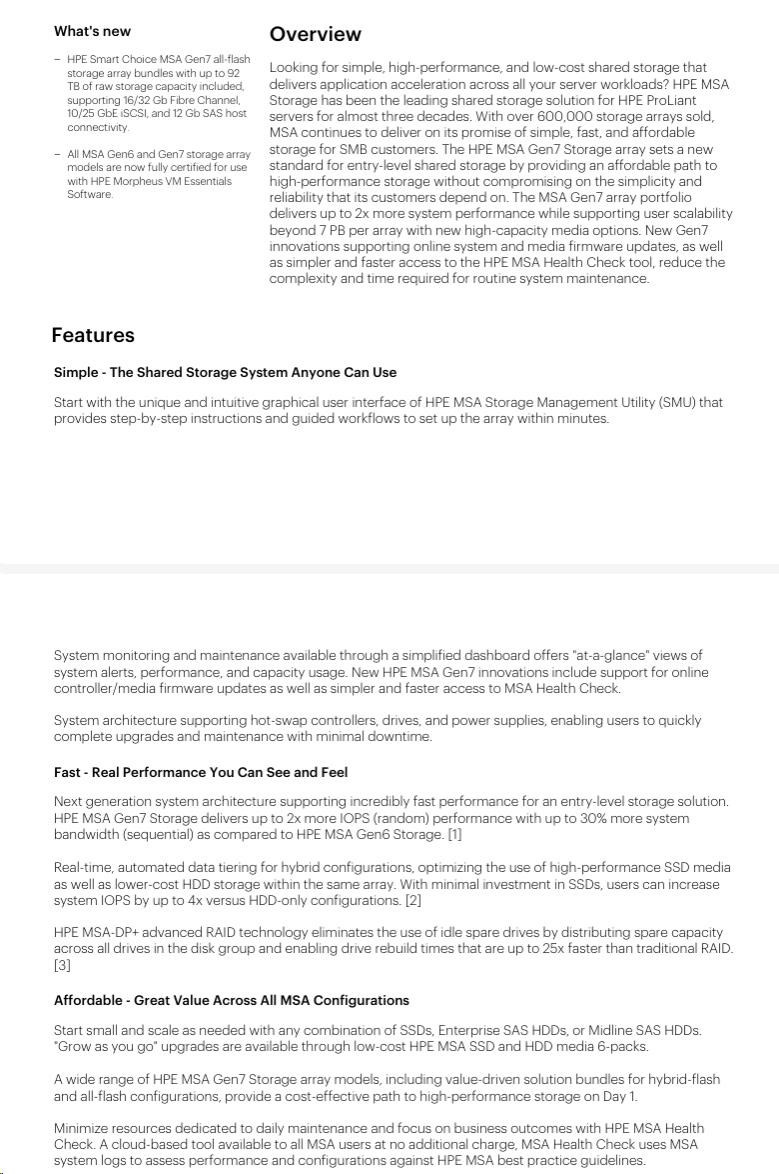 HPE MSA 2070 SFF 2x10/25GbE iSCSI 4pController 12x7.68TB SSD 4x10Gb iSCSI XCVR(4xC8R25B) 92TB Storage Array Smart Choice