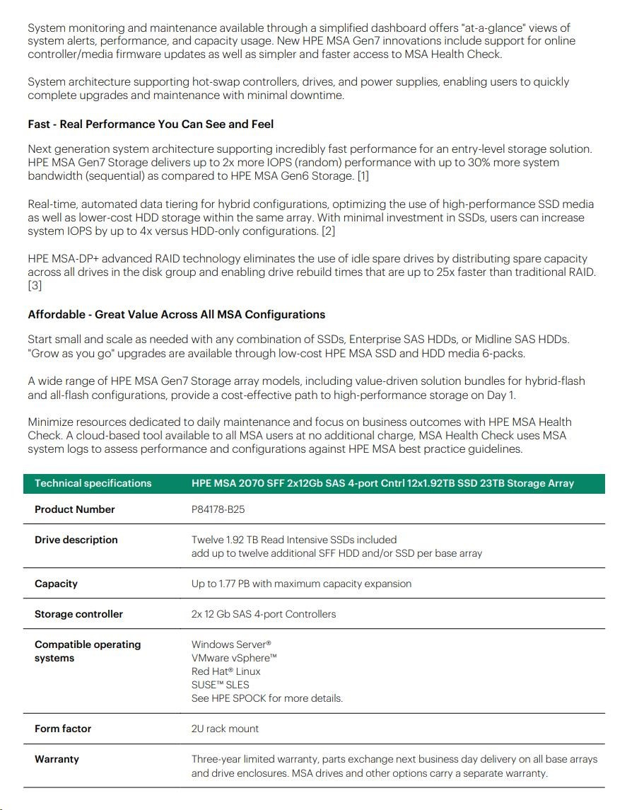HPE MSA 2070 SFF 2x12Gb SAS 4-port Controller 12x1.92TB SSD 23TB Storage Array Smart Choice