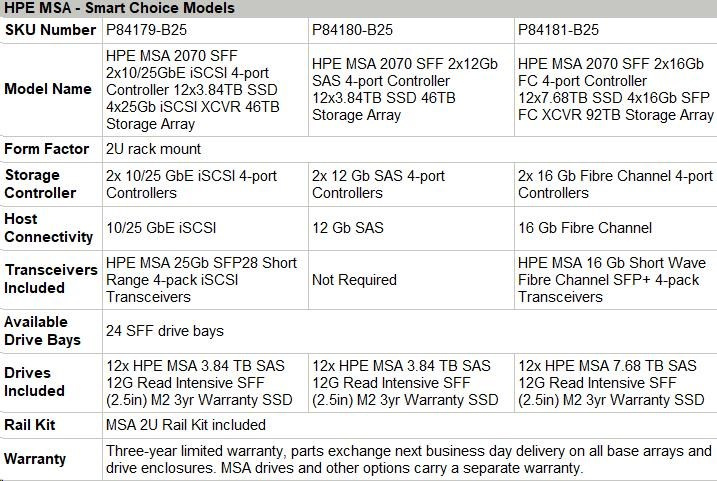 HPE MSA 2070 SFF 2x16Gb FC 4-port Controller 12x7.68TB SSD 4x16Gb SFP FC XCVR 92TB Storage Array Smart Choice