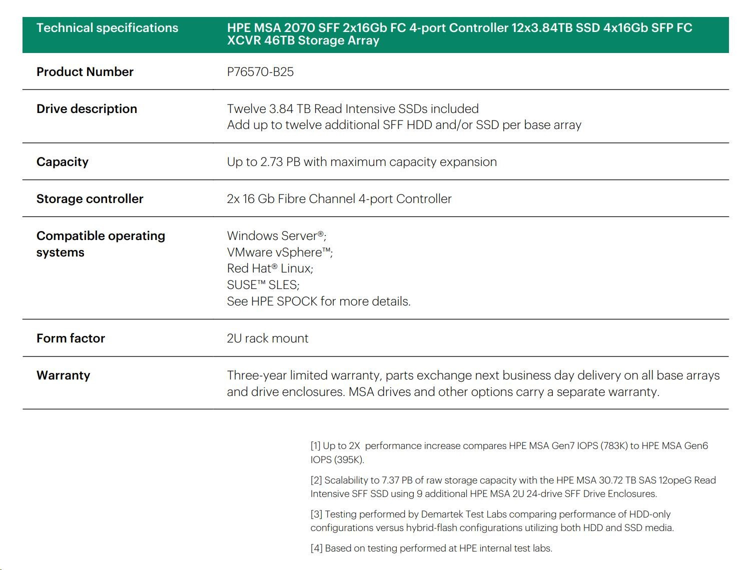 HPE MSA 2070 SFF 2x16Gb FC 4-port Controller 12x3.84TB SSD 4x16Gb SFP FC XCVR 46TB (C8R24B) Storage Array
