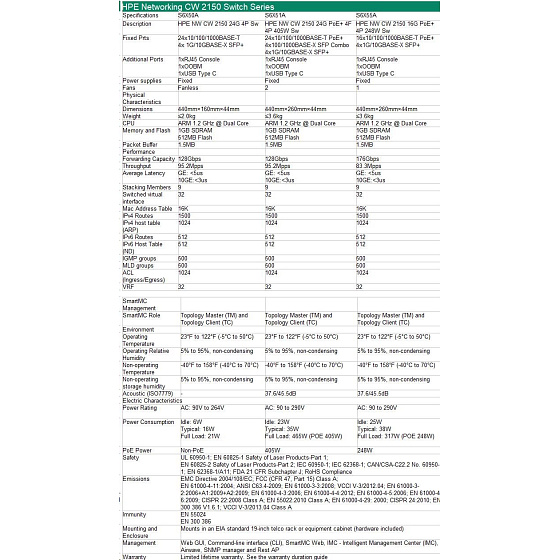HPE Networking CW 2150 24p 10M/100M/1G PoE+ 4p SFP 1G Combo 4p SFP+ 1G/10G 405W Switch.