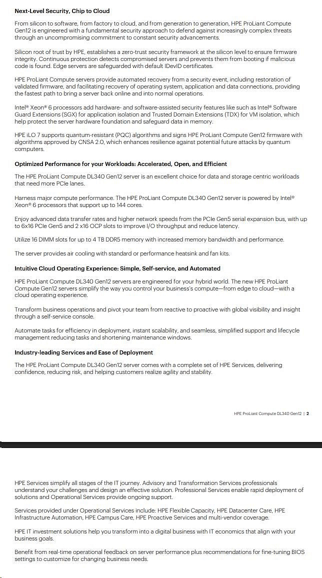 HPE PL DL340 Gen12 6515P (2.4/16C) 1x64G (P69728) NS204(2x480) MR416i-o 8SFF 2x1000W 10GbE NBD333 Smart Choice.