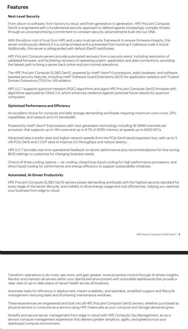 HPE PL DL360 Gen12 6505P (2.2/12C) 2x32G (P69727) 2x480G MR408i-o 8SFF 2x1000W 10GbE NBD333 Smart ChoicePE ProLiant Compute DL320 Gen12 Datasheet
