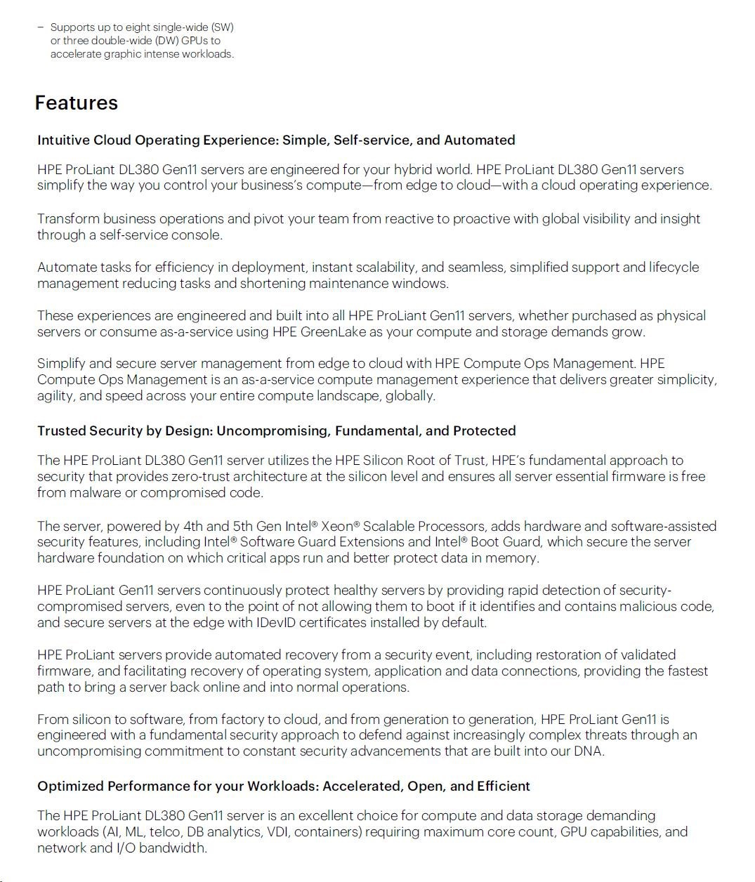 | Chassis | HPE ProLiant DL380 Gen11 8SFF NC Configure-to-order Server | |