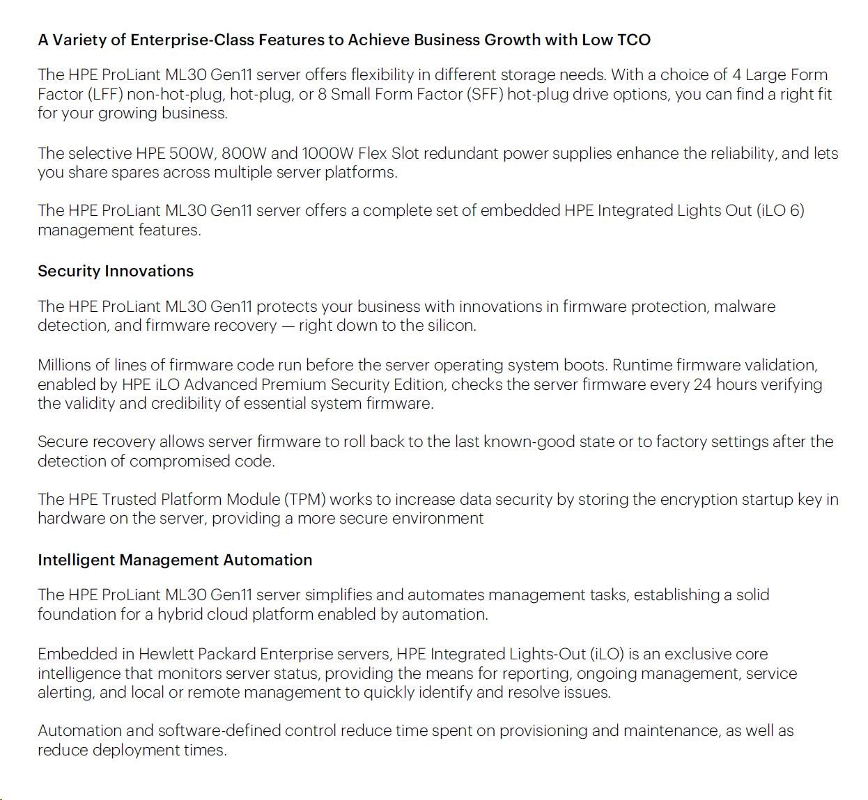 HPE PL ML30g11 6325P (3.5G/4C8T) 1x32G 2x480G SSD 8SFF VROC 1x1000W 4p1G NBD311 Smart Choice