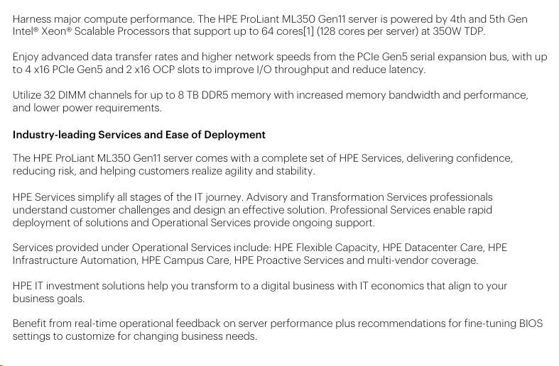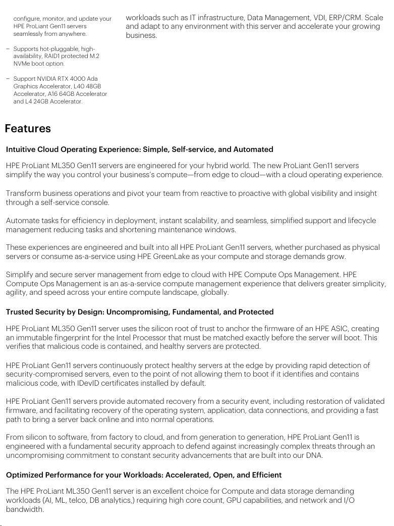 Optical Drive None ship as standard Notes: HPE ProLiant ML350 Gen11 Optical Disk Drive Cable Kit (P56608-B21) is required for optical drive.