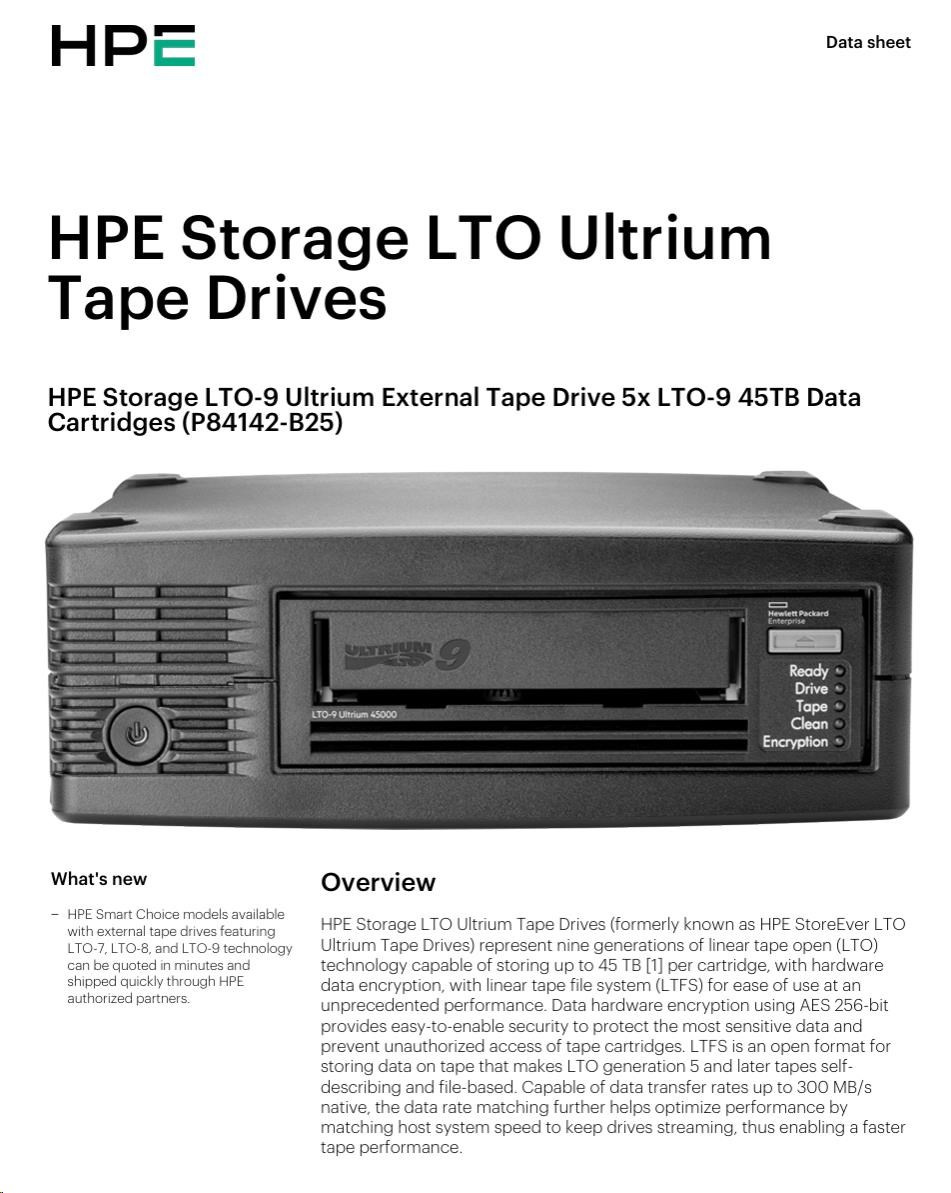 HPE Storage LTO-9 Ultrium External Tape Drive 5x LTO-9 (Q2079A) 45TB Data Cartridges Smart choice
