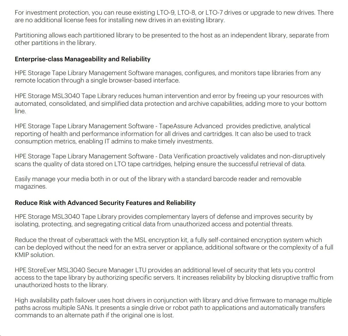 HPE Storage MSL3040 Tape Library 1x MSL LTO-9 SAS Drive 20x LTO-9 45TB Data Cartridges