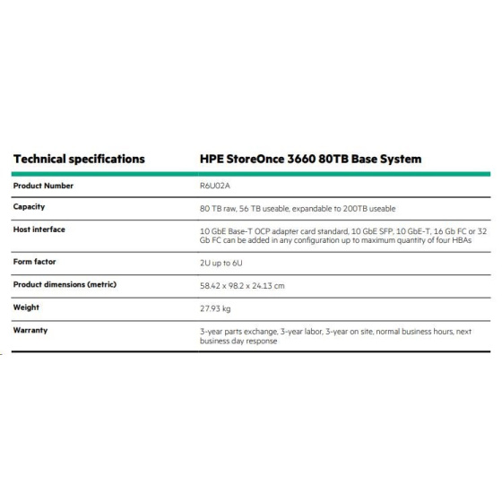 HPE StoreOnce 3660 80TB Base System (2U with10 x 8 TB disks).