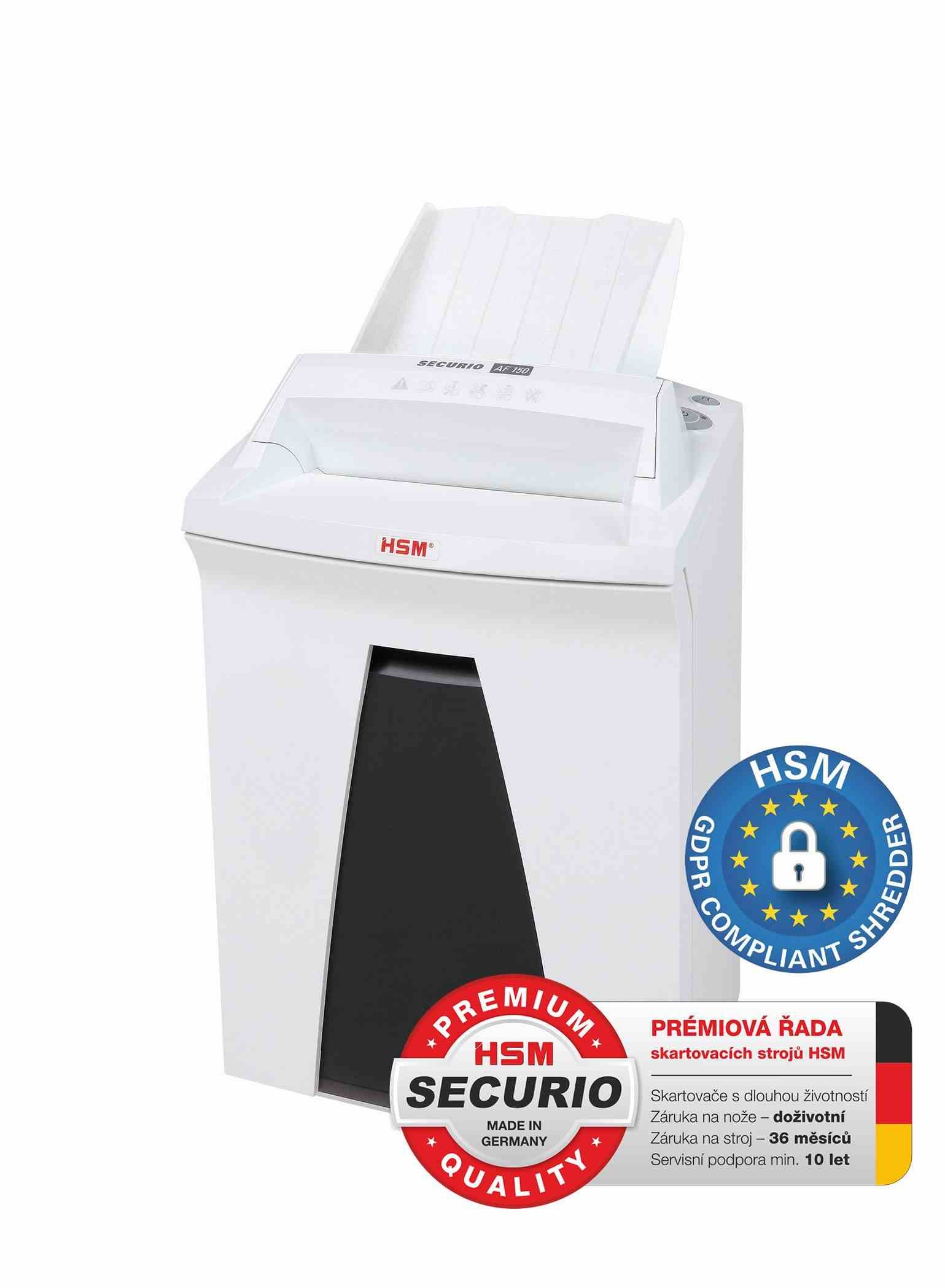 Skartovač HSM Securio AF150 (rez: kombinovaný 4,5x30 mm | vstup: 240 mm | DIN: P-4 (3) | papier, sponky, plast. karty, CD)