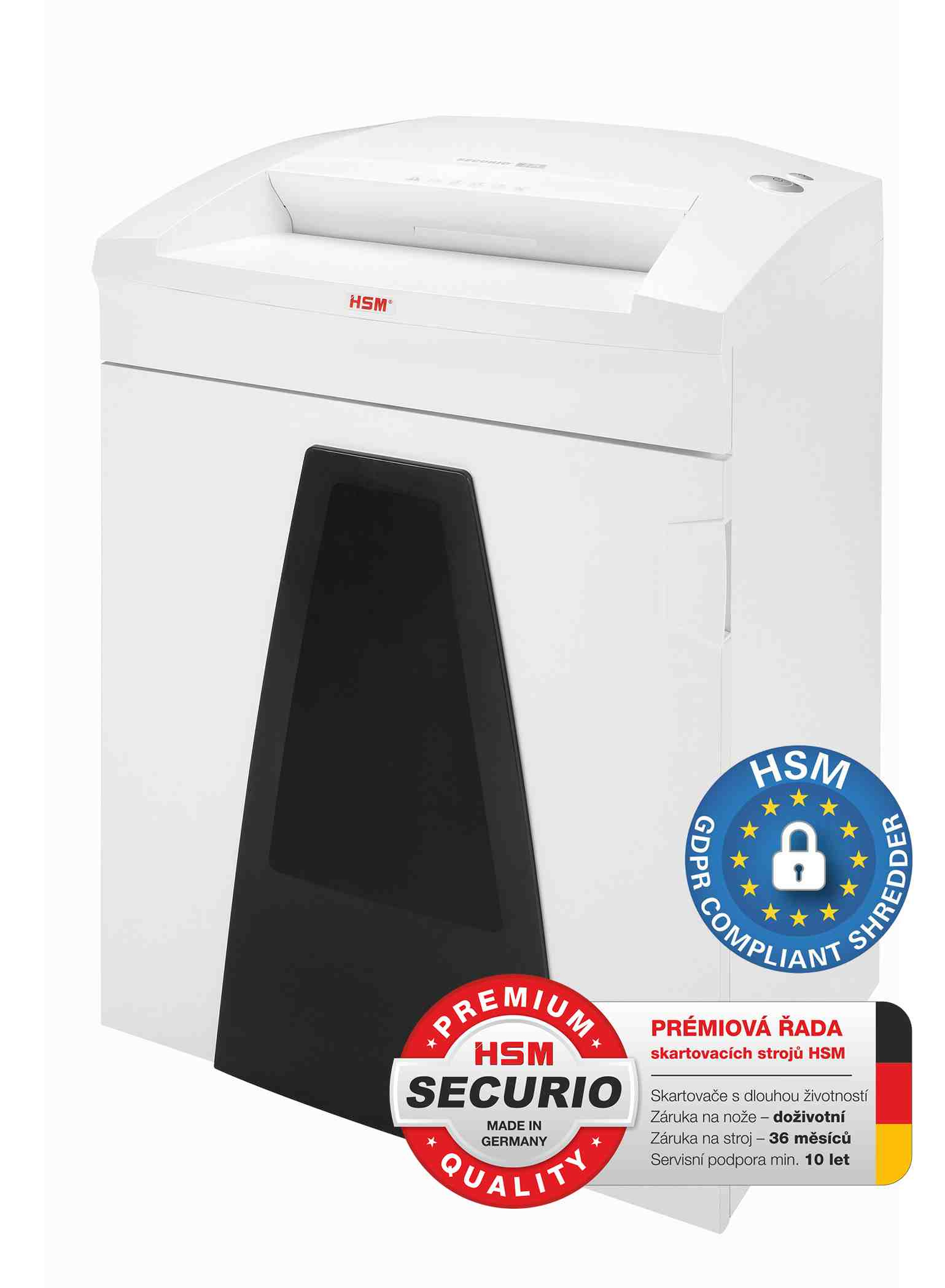 HSM SECURIO B35 1,9x15 mm je vhodný ako skartovač na spracovanie mimoriadne citlivých osobných údajov podľa GDPR, ich zneužitie by malo závažný dopad na dotknutú osobu (oblasť zdravotníctva, poisťovníctva, advokácie apod.).