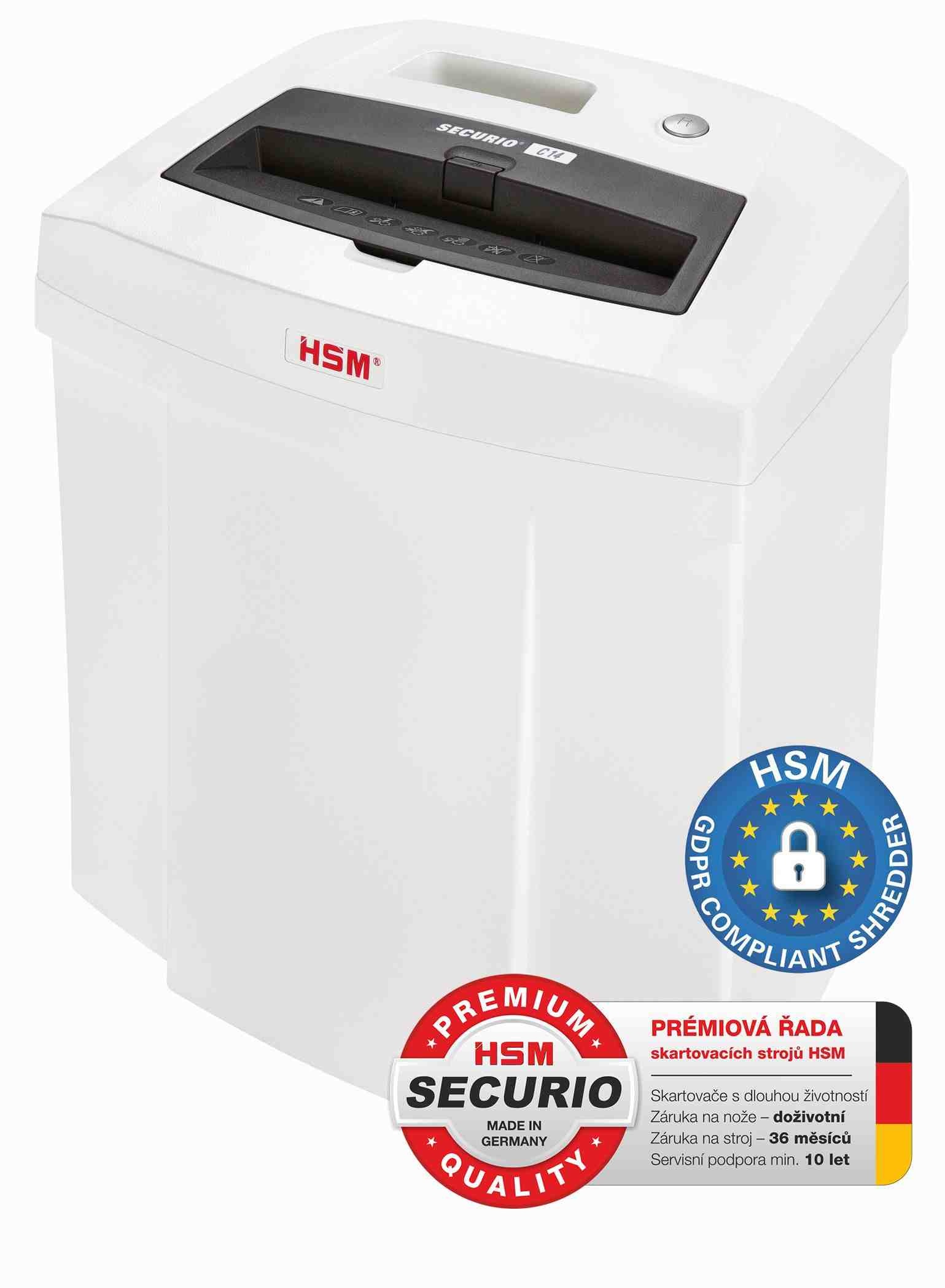 Skartovač HSM Securio C14 (rez: kombinovaný 4x25 mm | vstup: 225 mm | DIN: P-4 (3) | papier, sponky, plast. karty )
