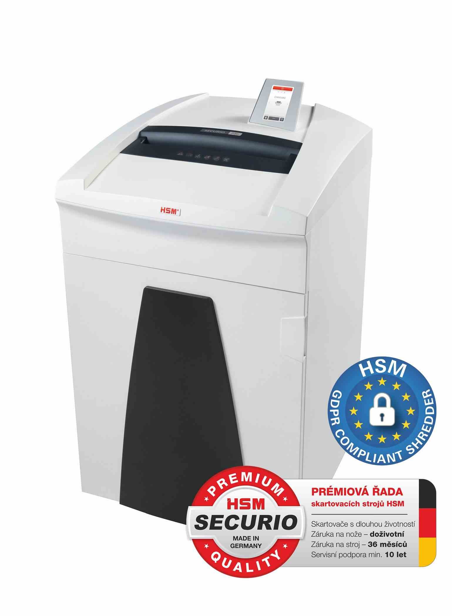 Skartovač HSM Securio P36i (rez: kombinovaný 4,5x30 mm | vstup: 330 mm | DIN: P-4 (3) | papier, sponky, plast. karty, CD)