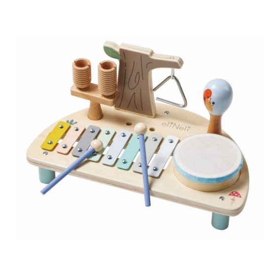 Drevený hudobný stolček s sadou 5 hudobných nástrojov pre deti, s motívom lesného kráľovstva, rozžiari očká každému dieťaťu a prebudí v ňom lásku k hudbe. Hudobný stolček v jemných pastelových farbách obsahuje základné detské hudobné nástroje, ktoré stimuluje zmysly, zdokonaľujú jemnú motoriku, oboznámia deti s tým, aké zvuky ktorý nástroj vydáva, ako sa na neho hrá.