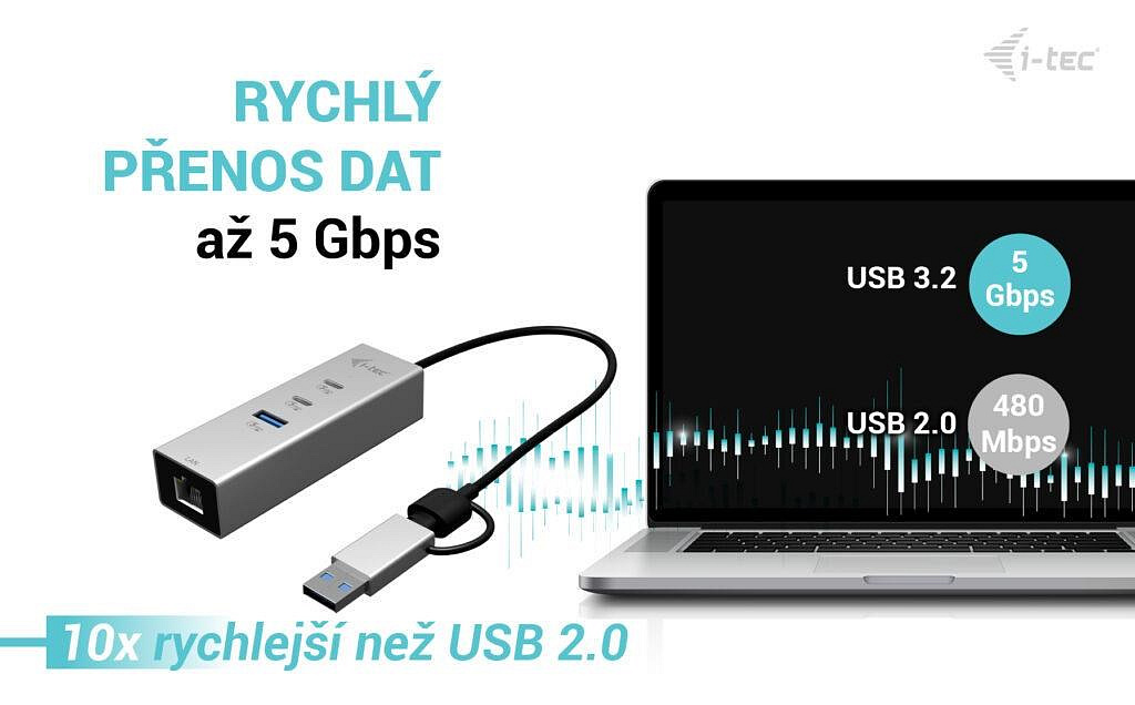 Hub nabízí dva USB-C a jeden USB-A port pro připojení periferií, jako jsou externí disky, klávesnice nebo další příslušenství. Nechybí ani rychlý 2.5 Gigabit Ethernet port, který poskytuje výrazně vyšší rychlost a stabilitu připojení oproti běžnému Gigabit LAN – ideální pro práci s velkými daty, online meetingy i streamování.