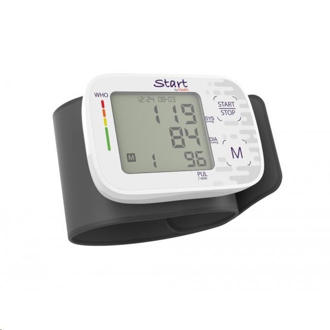 Tlakomer meria aktuálne hodnoty systoly, diastoly a pulzu pohodlne na zápästí ruky. Upozornenia na nepravidelný srdcový rytmus a stupnica hodnotenia krvného tlaku odporúčaná WHO vám pomôžu lepšie sa starať o svoje zdravie.