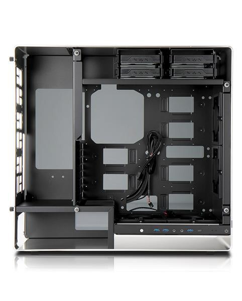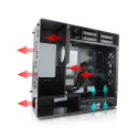 Oddelené pozície pre HDD a PSU zabezpečujú ideálne prúdenie vzduchu cez zadné vetracie otvory do vonkajšieho priestoru bez toho, aby teplému vzduchu bránili základné dosky alebo grafické karty.
