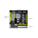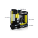 Počítačová skriňa 909 je vyrobená z odolných materiálov, jej skosené hrany a hlavná konštrukcia sú z eloxovaného hliníka, čo vytvára majstrovské dielo remeselného spracovania. Zadný dizajnový panel ukrýva všetku kabeláž a bočné panely z tvrdeného skla dotvárajú moderný a dynamický vzhľad.