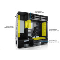 Počítačová skriňa 909 je vyrobená z odolných materiálov, jej skosené hrany a hlavná konštrukcia sú z eloxovaného hliníka, čo vytvára majstrovské dielo remeselného spracovania. Zadný dizajnový panel ukrýva všetku kabeláž a bočné panely z tvrdeného skla dotvárajú moderný a dynamický vzhľad.