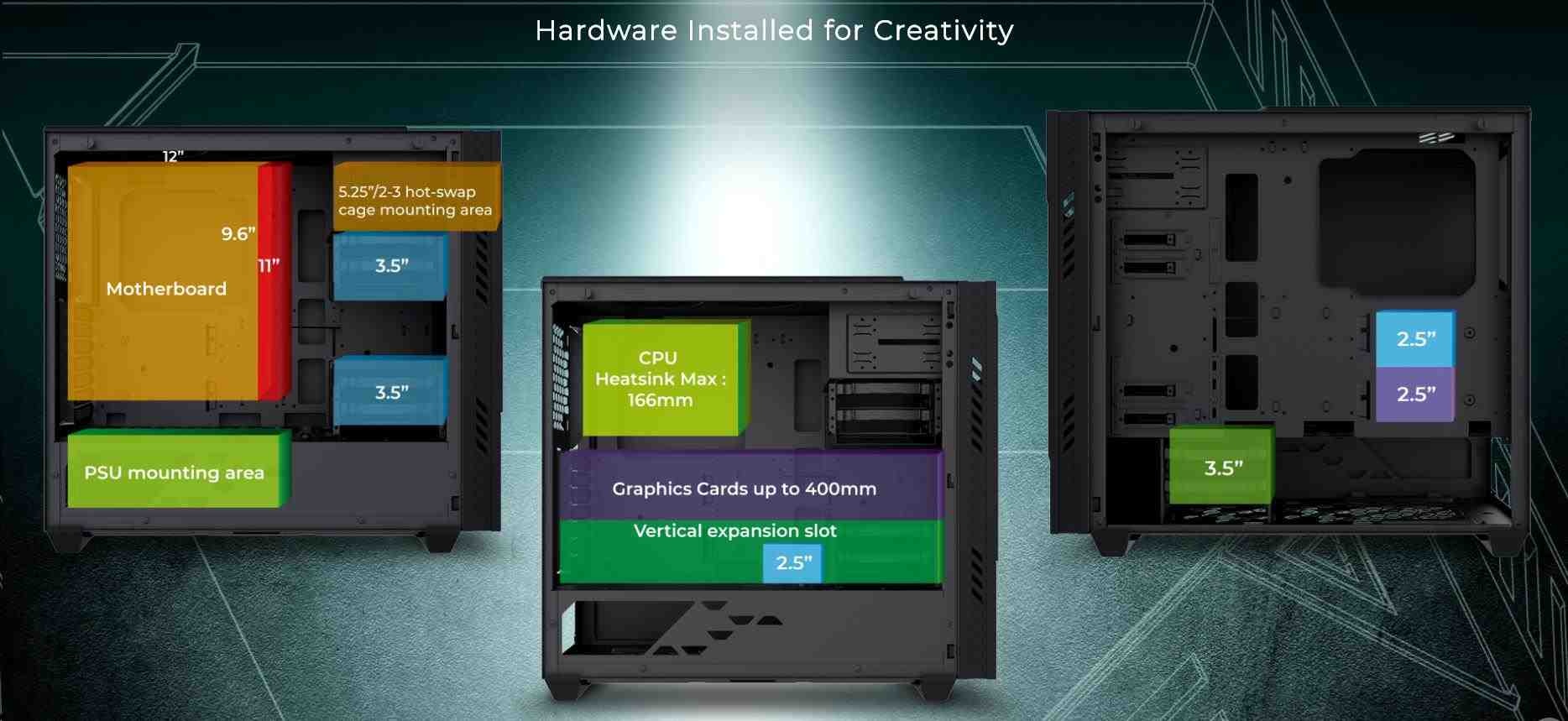 Vytvorte si vlastný systém s týmto vysoko kompatibilným podvozkom pre tvorcov.C200 je schopný umiestniť osem diskov, dva ODD alebo využiť tento priestor na 2-3 pozície s možnosťou výmeny za prevádzky. *na požiadanie a za príplatok sú k dispozícii 2-3 klietky na disky s funkciou hot-swap.