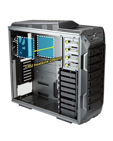 Aby ste si mohli vychutnať maximálny výkon svojho počítača, je možné do skrine zabudovať dve jednotky vodného chladenia, jednu v hornej časti s dĺžkou až 360 mm a druhú v spodnej časti s dĺžkou až 240 mm. Do skrine možno umiestniť až 10 ventilátorov (vrátane 4 predinštalovaných) na optimálnu cirkuláciu vzduchu.