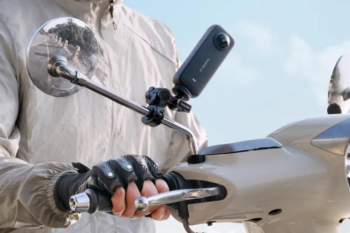 Držák na zrcátka motocyklu či scooteru, díky kterému pořídíte záběry "ze třetí osoby". Lze připevnit