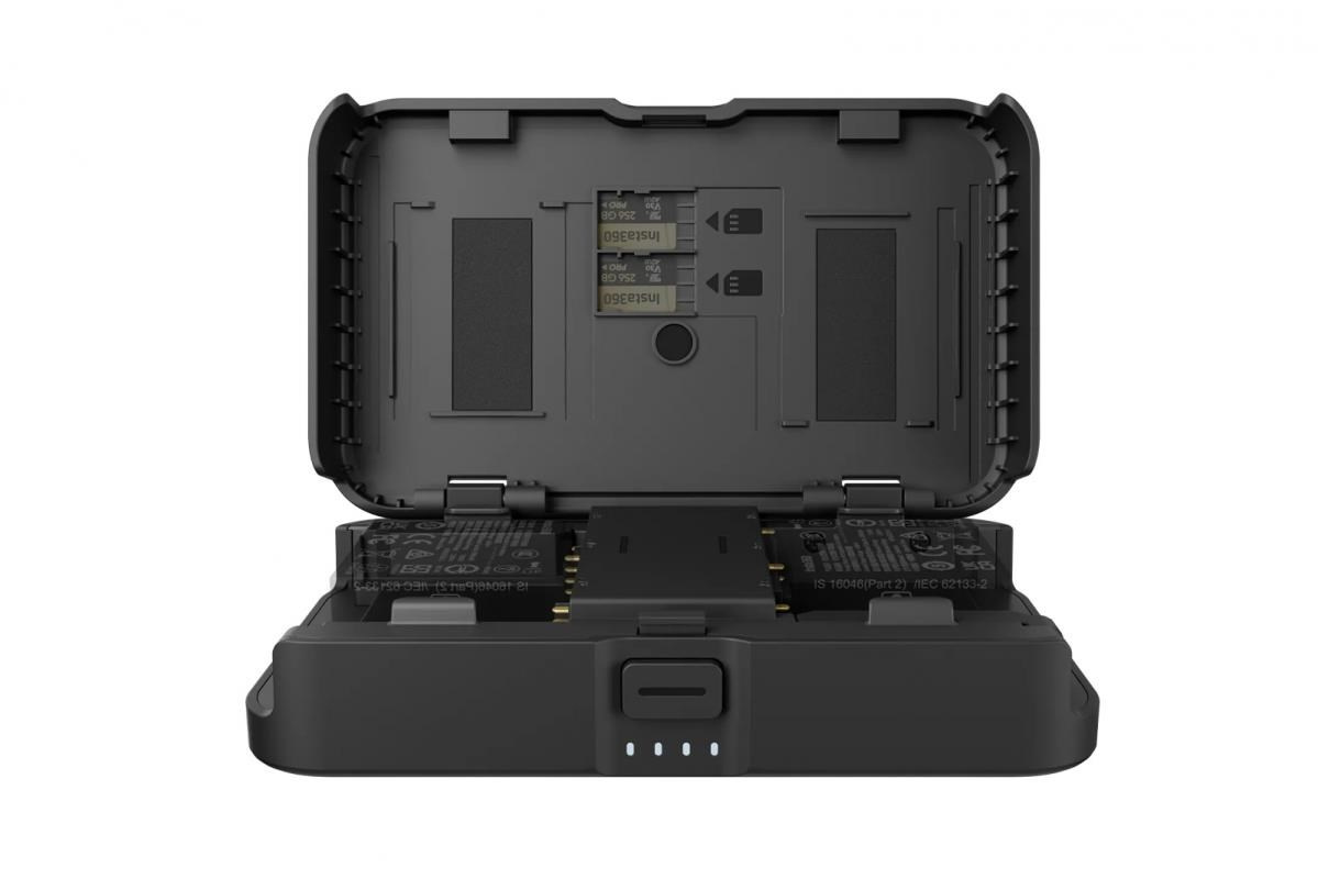 Praktické nabíjanie dvoch batérií s úložným priestorom pre dve microSD karty. Kompatibilné s batériami Insta360 Ace Pro 2, Ace Pro, Ace, X4 a X3. Vstavaná batéria 10 000 mAh zabezpečuje neprerušenú prevádzku. Popis produktu bol preložený pomocou umelej inteligencie a môže obsahovať nepresnosti.
