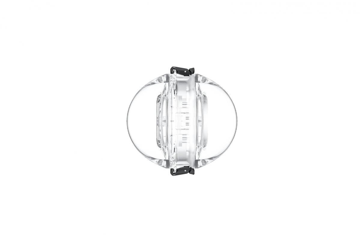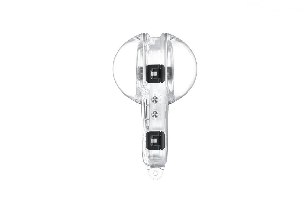 Neviditeľné puzdro v 360° záberoch: optický dizajn s kupolou minimalizuje skreslenie a optické artefakty pod vodou, takže puzdro nie je vo videu vidieť.