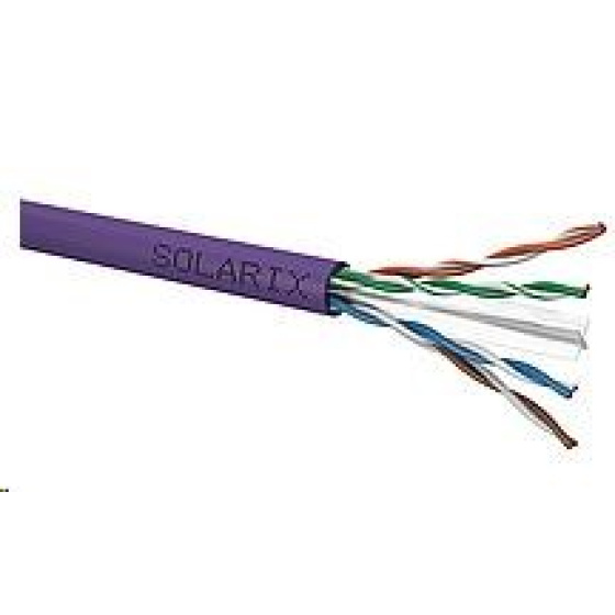 Tento inštalačný kábel z produktového radu Solarix - kategória 6 s označením SXKD-6-UTP-LSOH je vysokokvalitný kábel určený na horizontálnu štruktúrovanú kabeláž, ktorý bez problémov spĺňa a prekračuje požiadavky špecifikované v medzinárodných normách ANSI/TIA 568, ISO/IEC 11801 a EN 50173 pre kabeláž kategórie 6 a triedy E vrátane všetkých najnovších doplnkov. Káble Solarix kategórie 6 sú k dispozícii v tienených a netienených verziách s rôznymi typmi plášťov - napr. PVC (trieda reakcie na oheň Eca), LSOH (trieda reakcie na oheň Dca s2 d2 a1) alebo UV stabilný PE (trieda reakcie na oheň Fca). Vodiče týchto káblov sú vyrobené z kvalitného medeného drôtu AWG 23. Jednotlivé páry sú oddelené plastovým krížom. Rovnako ako ostatné káble Solarix je aj kábel SXKD-6-UTP-LSOH označený metrovým meradlom v krokoch po 1 m od 0 do 500 m. Kábel sa dodáva na vysokopevnostnej drevenej cievke, na ktorej sú uvedené všetky potrebné informácie o výrobku vrátane čiarových kódov, výrobnej šarže, opisu a najdôležitejších technických parametrov.