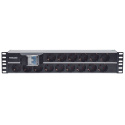 -2U 19" stojanová jednotka -Styl inštalácie držiaka: čelný -Funkcie ovládania a ochrany: dvojitý vzduchový spínač -Farba a materiál plášťa: čierny hliník -2U stojanová jednotka -Štandard zásuviek/výstupov: IEC60884 -Výstupy: 15-cestné -Špecifikácia kábla: štandard 3 m (10 ft.) napájací kábel -Veľkosť: 482.6 (D) x 44.4 (W) x 88.8 (V) [mm] / 19 (D) x 1.75 (W) x 3.5 (H) [in] -Elektrická trieda: 250 V AC -Maximálny záťažový prúd: 16 A..
