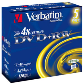 Typ média:DVD+RW; Druh balenia média:Slim.