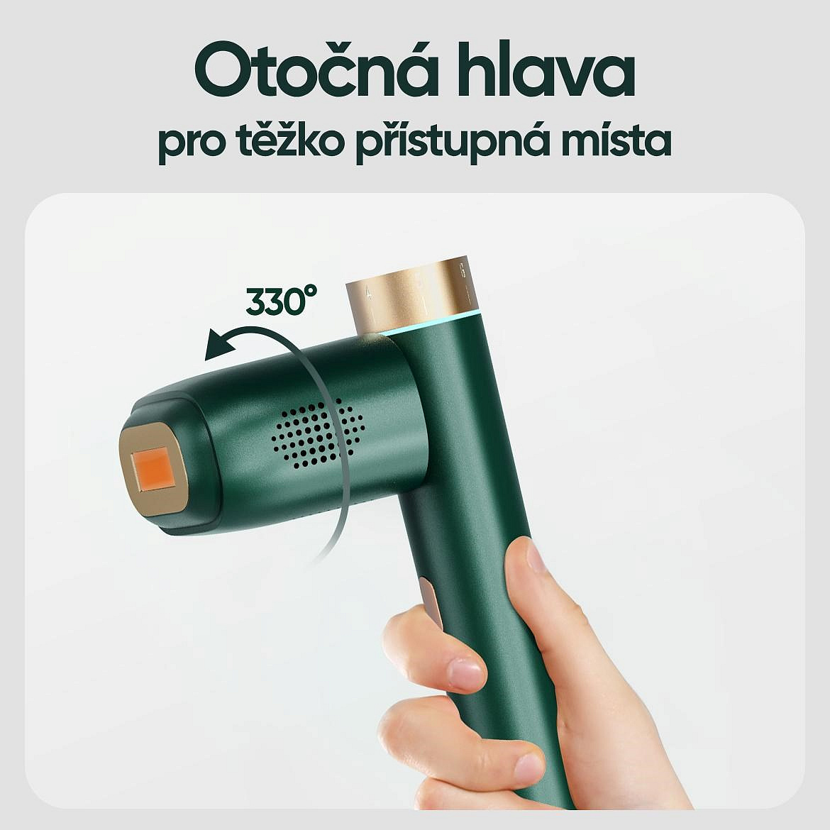 Predstavte si pokožku, ktorá je nielen dokonale hladká, ale aj viditeľne omladená, prejasnená a sjednotená. Unikátny safírový chladicí systém a technológia filtračného svetla zaručujú úplne bezbolestný a bezpečný zážitok, zatiaľ čo špeciálny SR režim sa stará o regeneráciu a zkrášlenie vašej pleti. Vďaka inovatívnej otočnej hlavici o 330° dosiahnete ľahko aj na tie najhĺbšie dostupné miesta.