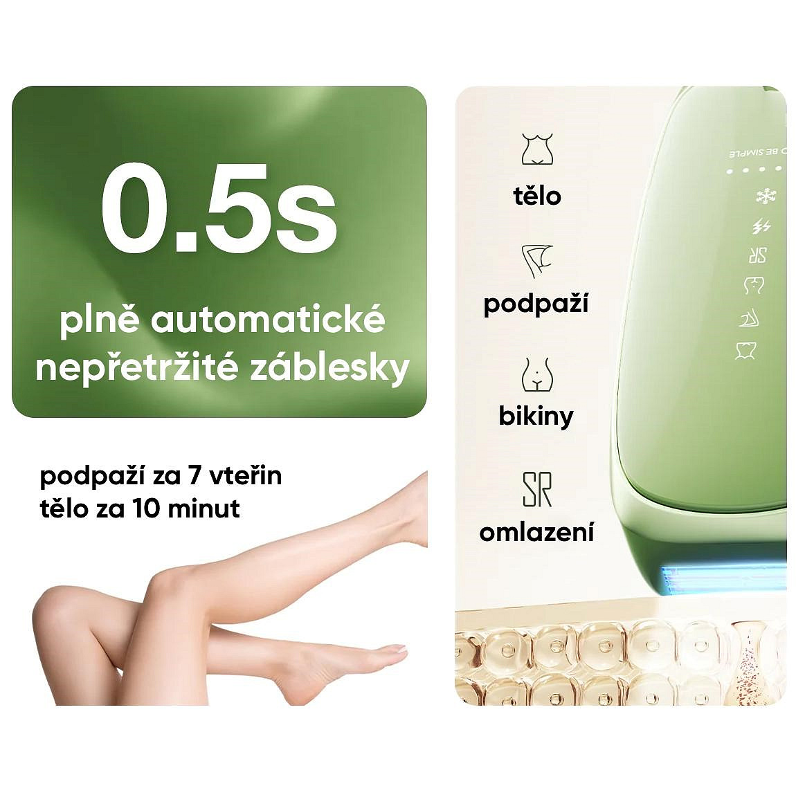 JOVS Scroll mení pravidlá hry vďaka svojej impozantnej energii 21 Joulov a extrémne rýchlym zábleskom v intervale len 0,2 sekundy. Táto kombinácia sily a rýchlosti znamená, že ošetrenie celého tela je otázkou niekoľkých minút, nie hodín. Prístroj navyše ponúka viac než len odstránenie chlpov; jeho druhý režim je zameraný na vyhladenie a omladenie pokožky, čím získate komplexnú starostlivosť v jednom kroku.