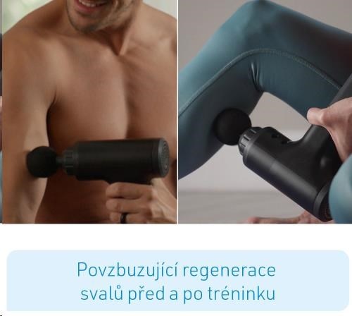 -Efektívna technika perkuse - uvoľní vaše hlboké svaly rovnomerne pulzujúcimi rázmi