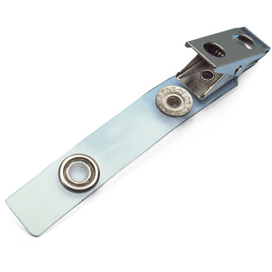 Kovový klip na pripevnenie štítkov s preddierkovaným oválnym otvorom. Priehľadná plastová opierka otočná o 360°. 1 balenie obsahuje 100 klipov..