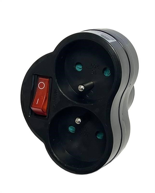 1x guľatá zásuvka + 2x plochá zásuvka 250 V~/ 2×2,5A 1x10A. Max 2300W.