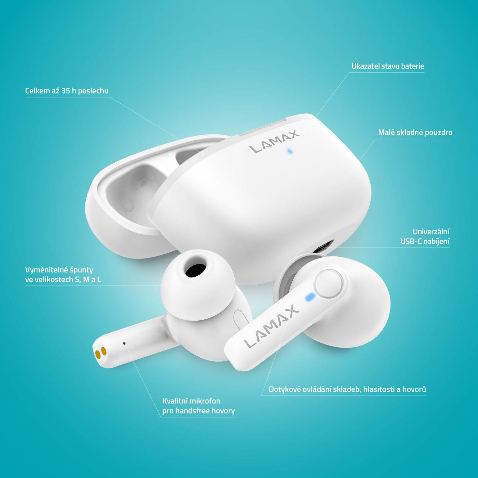 Popis LAMAX Clips1 Play - špuntová sluchátka - bílé