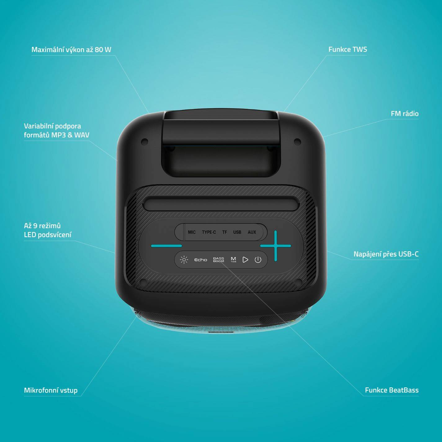 Nezáleží na tom, či chystáš oslavičku, chceš sledovať film, ideš si zacvičiť alebo len vypočuť podcast, LAMAX PartyKing1 Play ťa svojim zvukom s výkonom 80 W úplne odzbrojí. Keby to na večierok nestačilo, pripojíš vďaka funkcii TWS (True Wireless Stereo) ďalší reprák a zdvojnásobíš výkon. Žiadne oneskorenie, len čistý a vyrovnaný zvuk podporený technológiou BeatBass®, ktorá dodá koncertný rozmer a priamo ťa vtiahne do každého songu. Tú správnu atmosféru ešte dotvorí 9 nastaviteľných LED efektov.