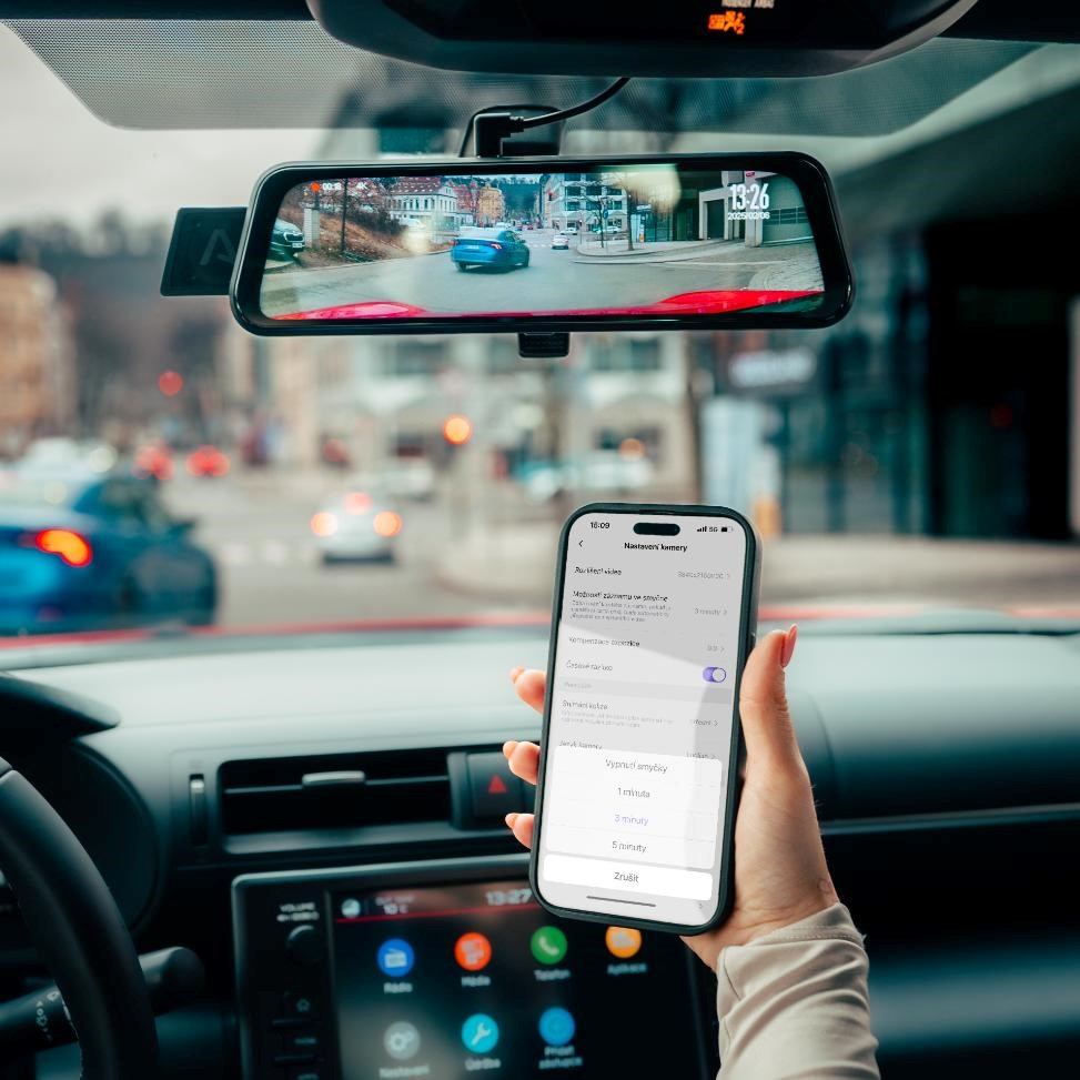 Autokameru je možné prepojiť s mobilnou aplikáciou a prostredníctvom nej ovládať a spravovať zariadenie. Zároveň je možné rýchlo stiahnuť záznamy do mobilu cez Wi-Fi.